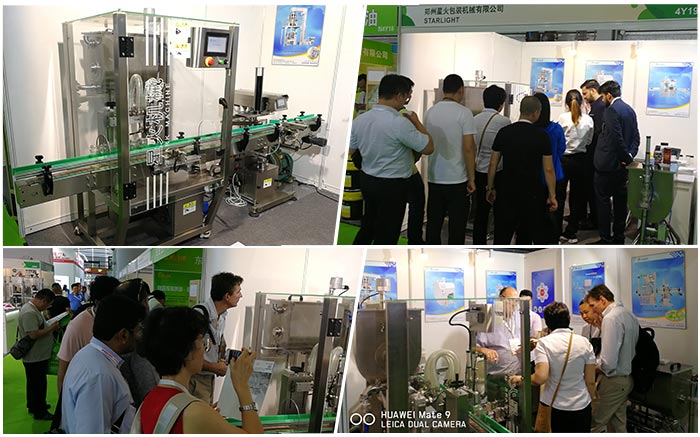 此次展會(huì)現(xiàn)場(chǎng)我司參展智能灌裝機(jī)設(shè)備有:全自動(dòng)雙頭顆粒醬體灌裝機(jī)、甜面醬灌裝旋蓋一體機(jī)、辣椒醬灌裝機(jī)、醬料灌裝旋蓋生產(chǎn)線等。眾多先進(jìn)的智能灌裝機(jī)設(shè)備的展示亮相吸引了眾多參觀者的目光,尤其是吸引了大批國外客戶的參觀和咨詢,眾多參觀者對(duì)我司所展設(shè)備有很高的熱枕,我司工作人員現(xiàn)場(chǎng)為參觀者們解答關(guān)于設(shè)備的咨詢、現(xiàn)場(chǎng)為大家演示設(shè)備的生產(chǎn)過程,讓參觀者可以更至關(guān)的看到設(shè)備的生產(chǎn)能力,大家對(duì)我司設(shè)備很是贊賞!